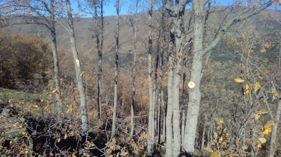 Podas sanitarias y cortas selectivas de policía y de mejora, a modo de clareos sobre 26,5 ha en bosquetes de Quercus faginea.
