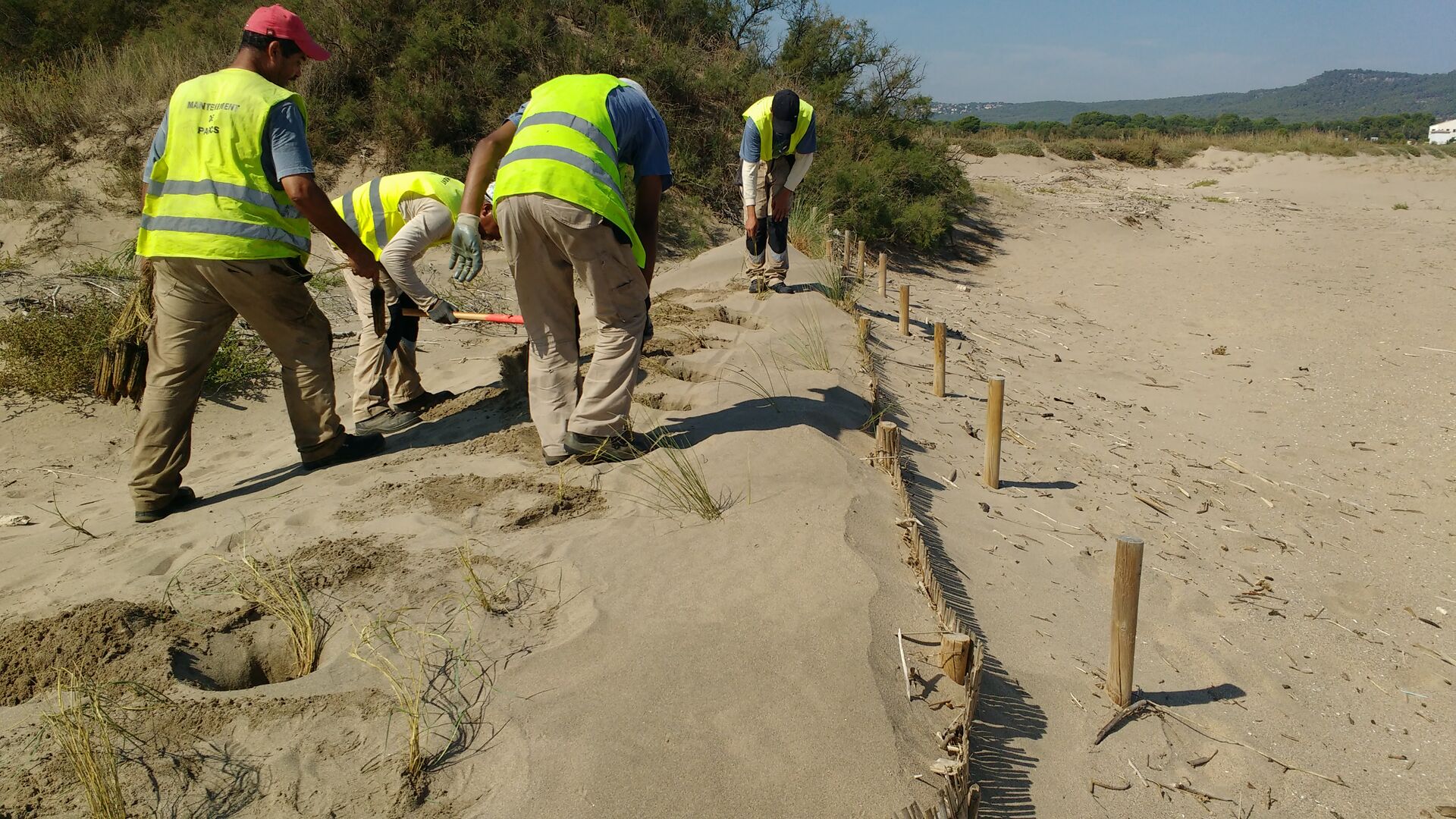 - Delimitación de las áreas de playa alta y dunas a gestionar y recuperar, con el uso de 6,56 km de cuerdas sustentadas sobre palos.